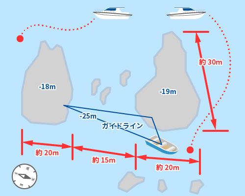 ログ周辺の主なボートポイントは4か所!すべて梅浦港(ログより車で3分)より出港します。どのポイントも5分~10分程度で船 酔いの心配も少ない。4か所それぞれ特徴があり、ダイナミックな地形ポイント!水路・ケープがある穴場ポイント!などなど初級者から上級者まで幅広く楽しめます。